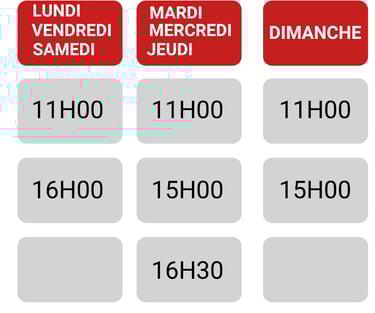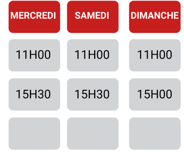 Sauf samedi 18 et dimanche 19 séance uniquement à 15h00